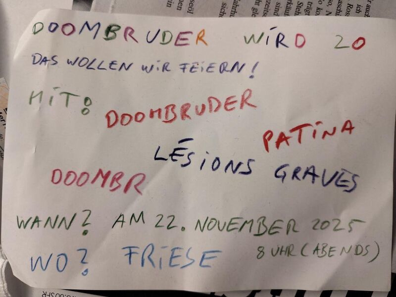 °^SISSI/Die Chinesische Wäscherei^° präsentieren: DOOMBRUDER / DOOMBR (Bremen, ex. Members of The Duders, 20 Jahre Jubiläum) / Lésions Graves (Bremen) / Patina (Bremen)